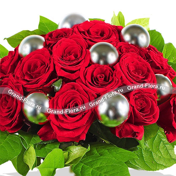 Атмосфера счастья - букет из красных роз и новогодних украшений